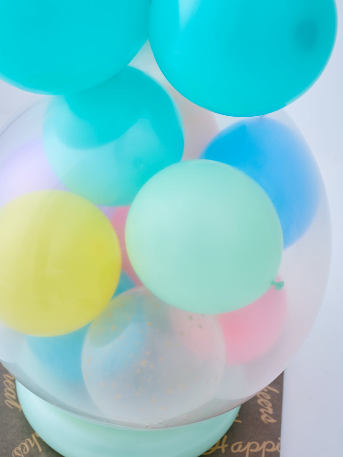 バルーンラッピングは、大きな透明バルーンの中へ、小さなバルーンやプレゼントを入れておつくりする、特別なギフトです。